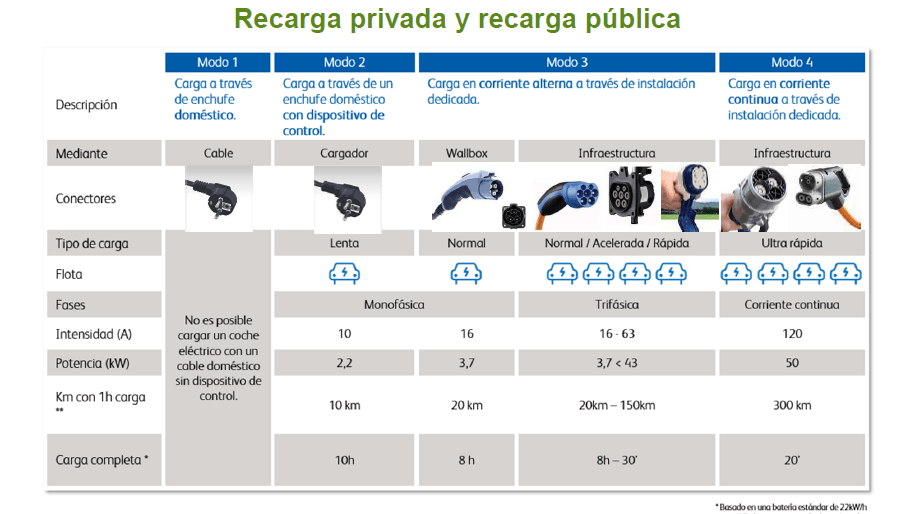 Tenemos tres tipos de recarga para vehículo eléctrico:
