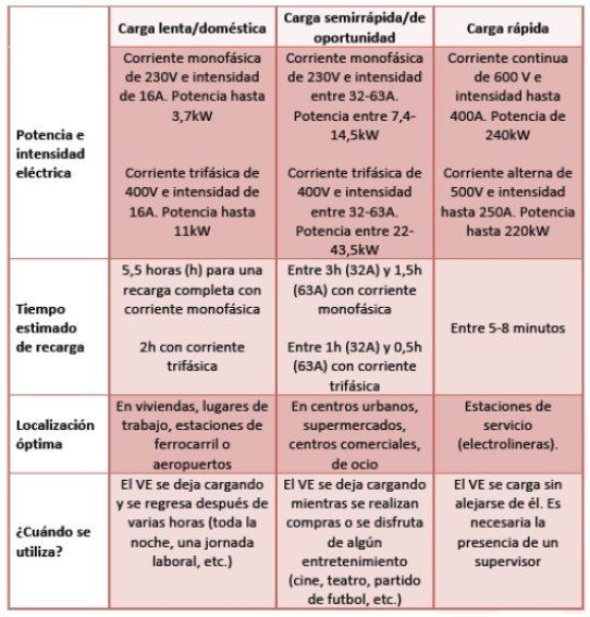 Tenemos tres tipos de recarga para vehículo eléctrico: